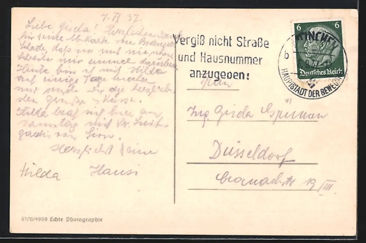 alte Ansichtskarte, gelaufen 1937, guter Zustand