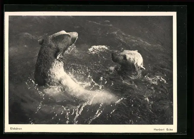 AK München, Zwei Eisbären beim Baden im Tierpark