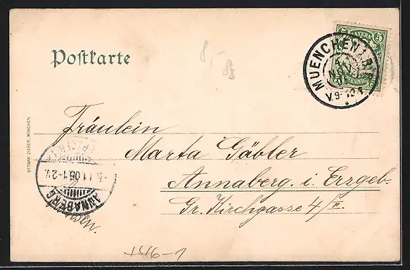 alte Ansichtskarte, gelaufen 1905, guter Zustand