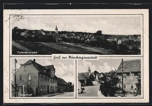 AK Münchengosserstädt, Gasthof, Dorfstrasse und Totalansicht