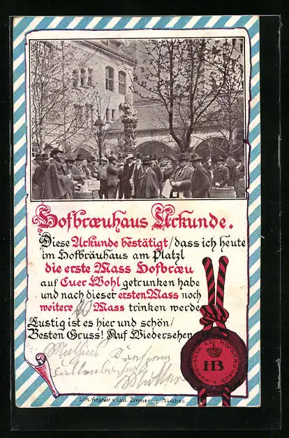 AK Münchner Hofbräuhaus Urkunde 10 Mass
