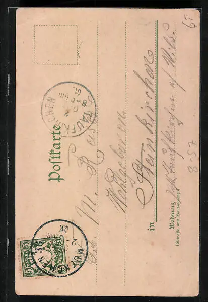 gelaufen 1901, Eckknicke li. unten u. re. oben, guter Zustand