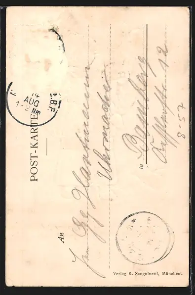 alte Ansichtskarte, gelaufen, Briefmarke entfernt, rückseitig Oberflächenschaden, guter Zustand