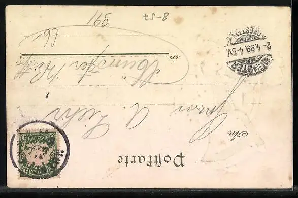 alte Ansichtskarte, gelaufen 1899, guter Zustand
