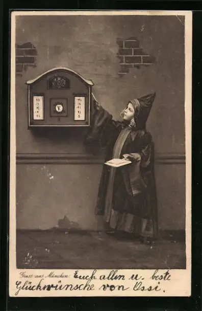 AK Münchner Kindl wirft Briefe in den Postkasten