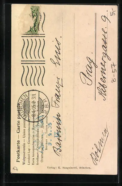 alte Ansichtskarte, gelaufen 1905, Briefmarke entfernt, Eckknick re. oben, guter Zustand