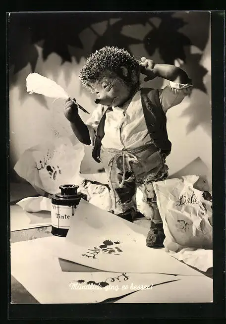 AK Mündlich ging es besser ! - Mecki beim Versuch einen Brief zu schreiben