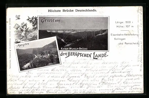 AK Müngsten, Ortsansicht und Kaiser-Wilhelm-Brücke im Bergischen Land