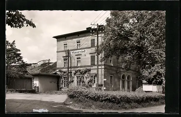 AK Münnerstadt, Bahnhof mit Blick zur Heilstätte