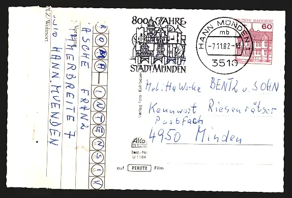 gelaufen 1982, rückseitig Klebe- und Papierreste, guter Zustand