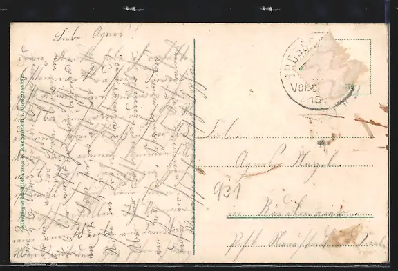 alte Ansichtskarte, gelaufen 1915, Briefmarke entfernt, guter Zustand