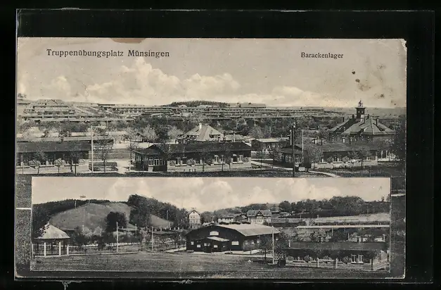 AK Münsingen, Barackenlager auf dem Truppenübungsplatz