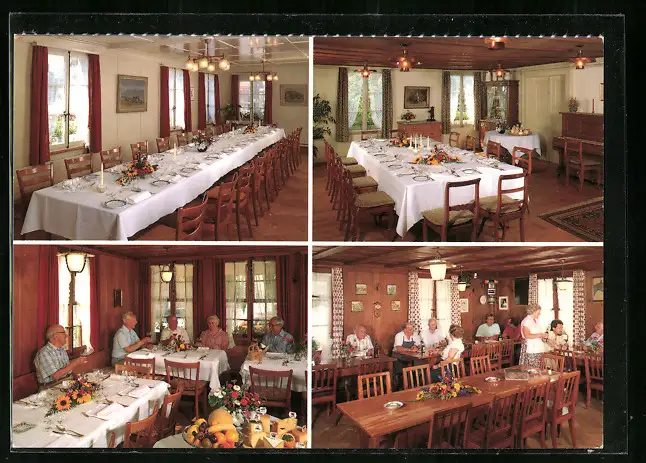AK Münsingen, Gasthof Ochsen in vier Innenansichten