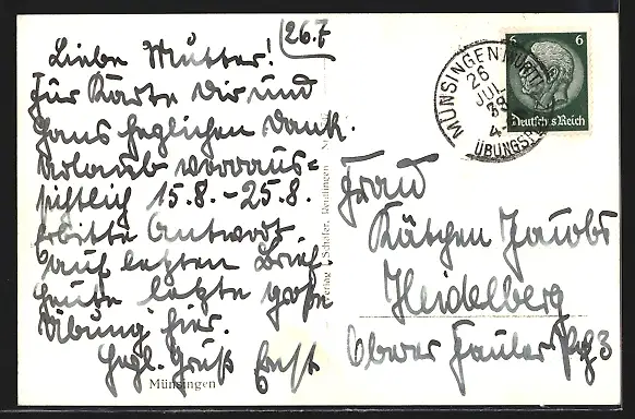 alte Ansichtskarte, gelaufen 1938, Stempelspur, guter Zustand