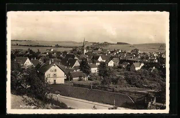 AK Münsingen, Ortsansicht mit Blick ins Land