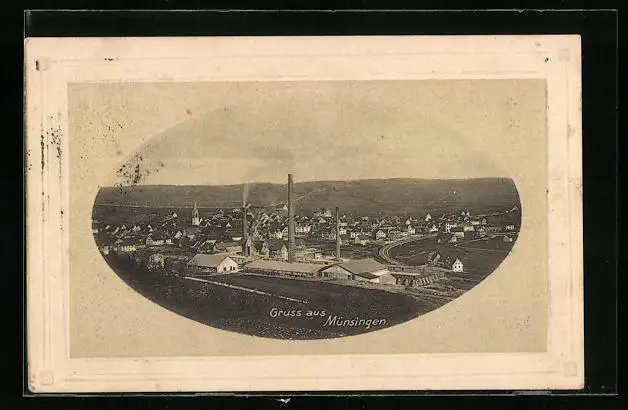 AK Münsingen, Ortsansicht mit Umland