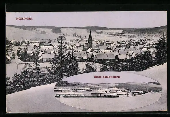 AK Münsingen, Ortsansicht und neues Barackenlager
