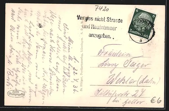 alte Ansichtskarte, gelaufen 1936, Eckknick li. oben, guter Zustand
