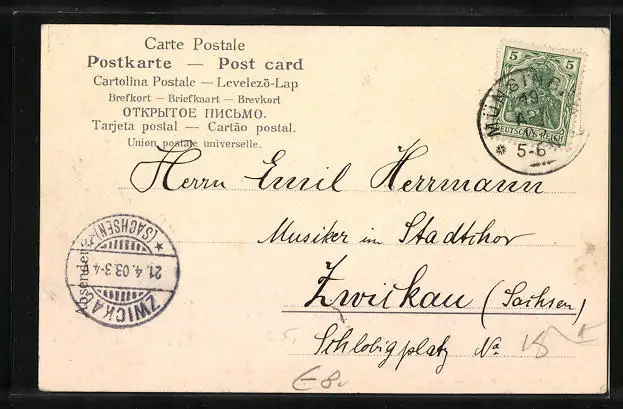 alte Ansichtskarte, gelaufen 1903, guter Zustand