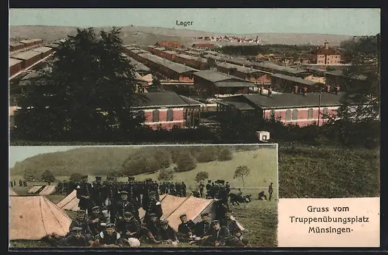 AK Münsingen, Truppenübungsplatz, Lager, Soldaten auf dem Zeltplatz