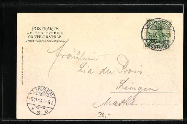 alte Ansichtskarte, gelaufen 1904, guter Zustand