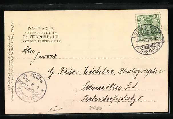 alte Ansichtskarte, gelaufen 1903, Eckknick unten li., guter Zustand