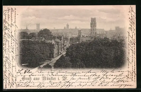 AK Münster i. W., Ortsansicht aus der Vogelschau