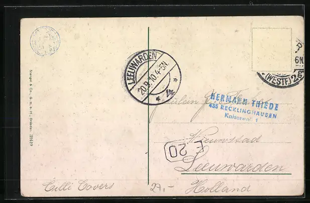 alte Ansichtskarte, gelaufen, Briefmarke entfernt, guter Zustand