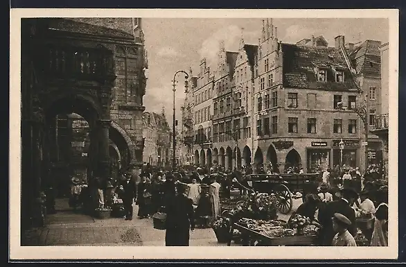 AK Münster i. W., Prinzipalmarkt am Markttag