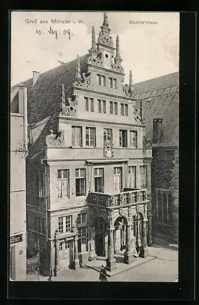 AK Münster i. W., Stadtweinhaus im Sonnenschein