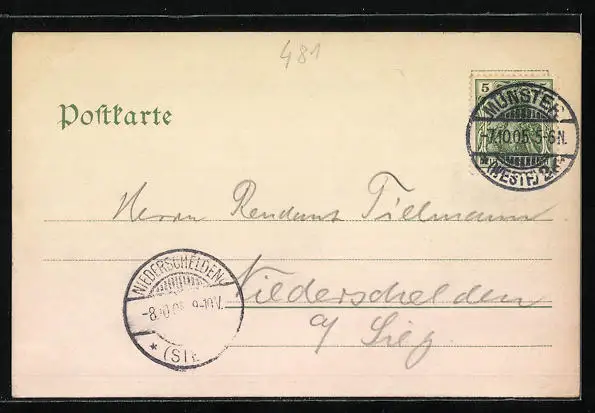 alte Ansichtskarte, gelaufen 1905, Eckknick unten rechts, guter Zustand
