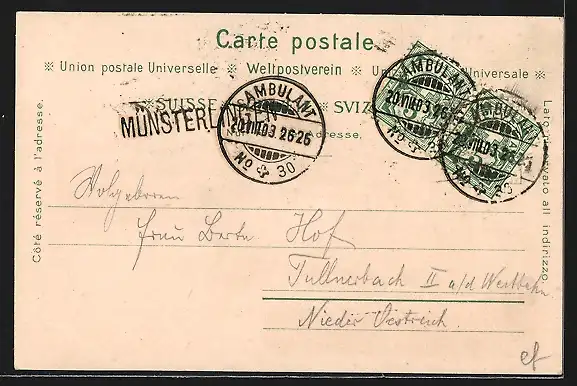 alte Ansichtskarte, gelaufen 1903, Stempelspur, Eckknick re. unten, guter Zustand