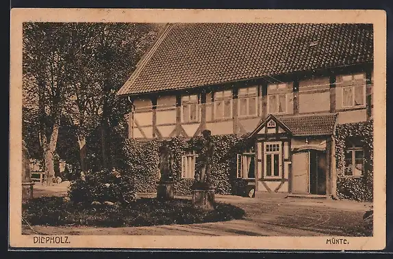 AK Münte /Diepholz, Fachwerkhaus und Statuen