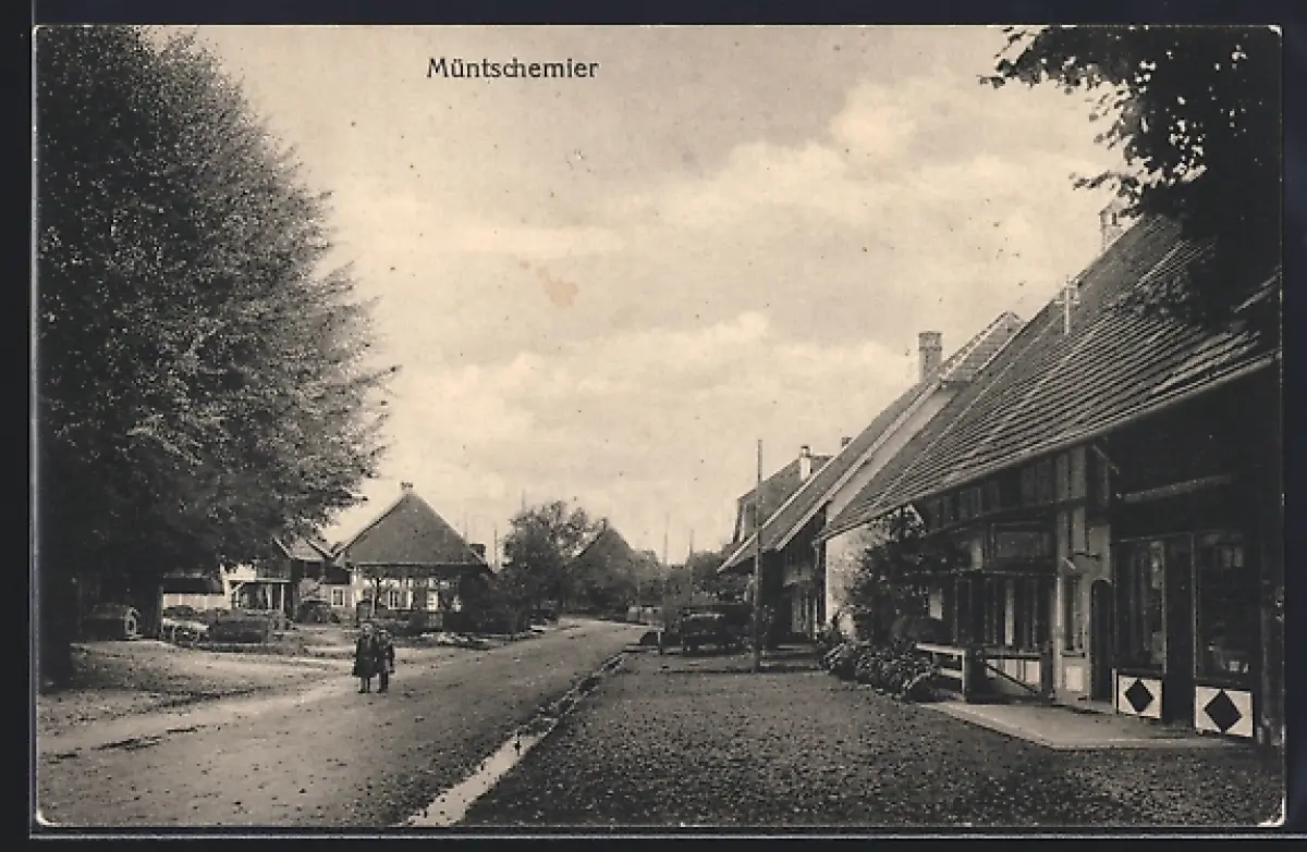 Personenbezogene Daten auf der Rückseite der Karte wurden durch blauen Textmarker unkenntlich gemacht. Die blauen Stellen sind auf die Vorderseite durchgeweicht und wirken sich negativ auf das Postkartenfoto aus