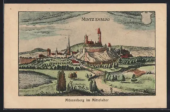 AK Münzenberg / Hessen, Ortsansicht im Mittelalter