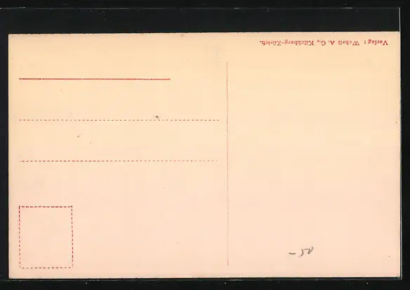 Personenbezogene Daten auf der Rückseite der Karte wurden durch blauen Textmarker unkenntlich gemacht. Die blauen Stellen sind auf die Vorderseite durchgeweicht und wirken sich negativ auf das Postkartenfoto aus