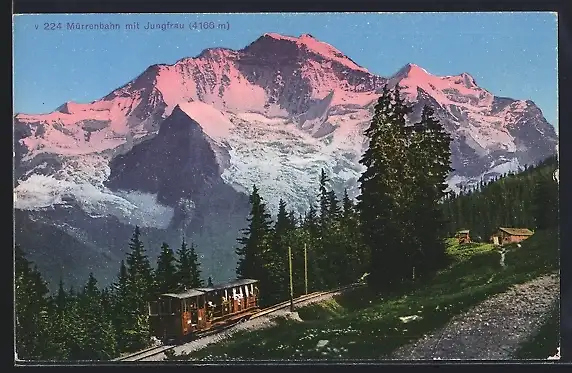 AK Mürrenbahn mit Bergspitze Jungfrau, Bergbahn