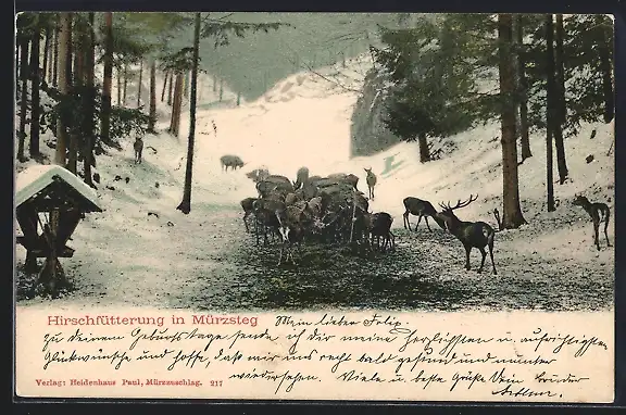 AK Mürzsteg, Hirschfütterung im Winter