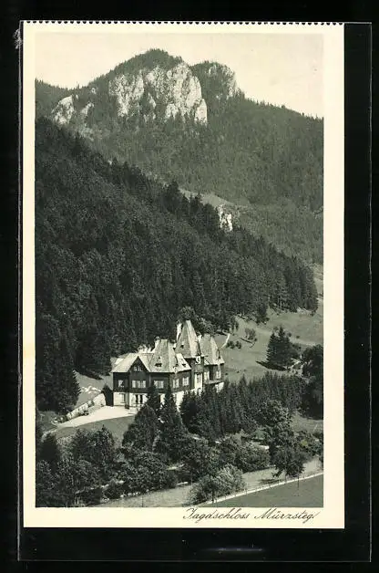 AK Mürzsteg, Jagdschloss aus der Vogelschau