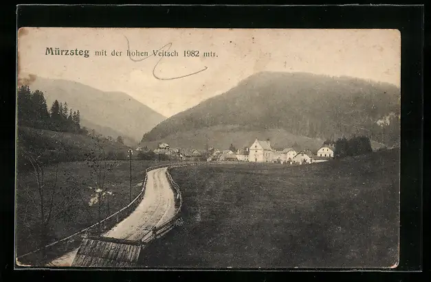 AK Mürzsteg, Ortspartie mit der hohen Veitsch