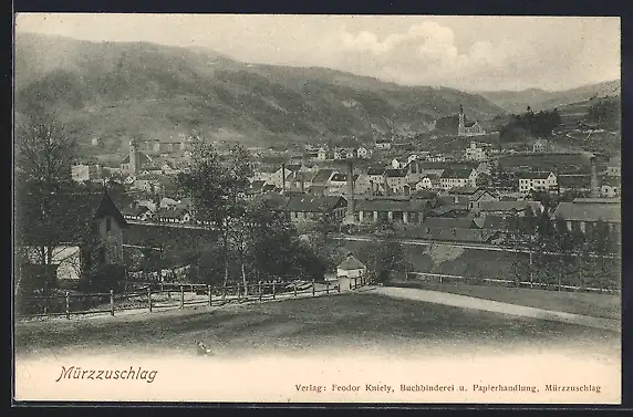 AK Mürzzuschlag, Ortsansicht mit Bergpanorama