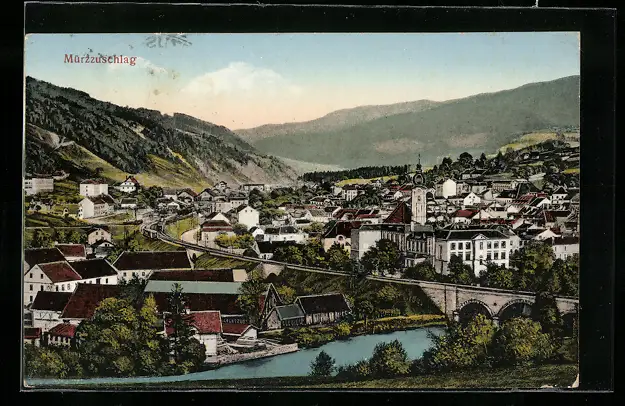 AK Mürzzuschlag, Ortsansicht mit Kirche