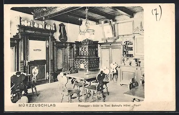 AK Mürzzuschlag, Rosegger-Stübl in Toni Schruf`s Hotel Post