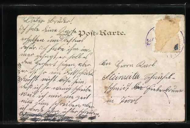 alte Ansichtskarte, gelaufen, Briefmarke entfernt, rückseitig Oberflächenschaden, Ecken bestoßen, guter Zustand