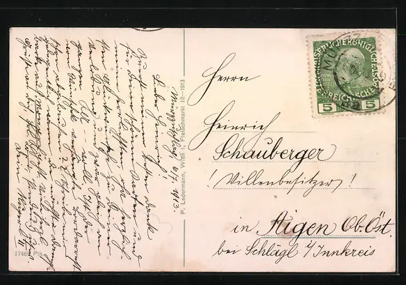 gelaufen 1913, Eckknicke re. unten, guter Zustand