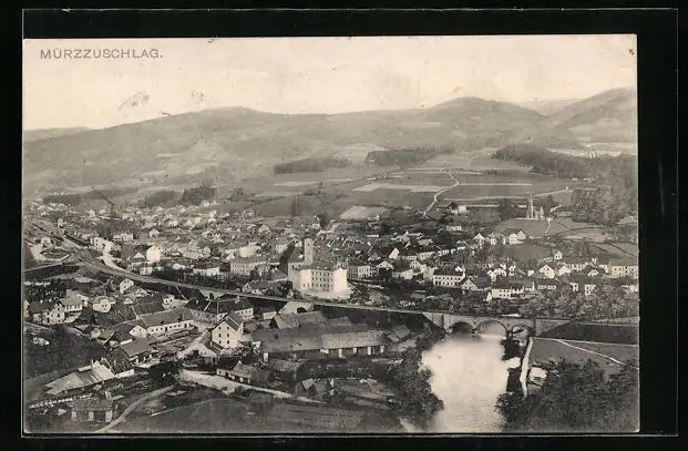 AK Mürzzuschlag, Teilansicht mit Brücke