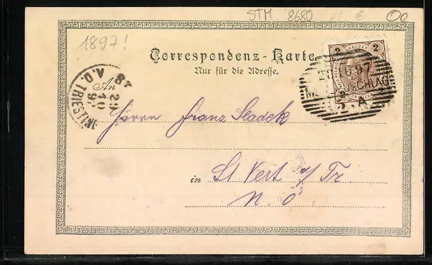 alte Ansichtskarte, gelaufen 1897, guter Zustand