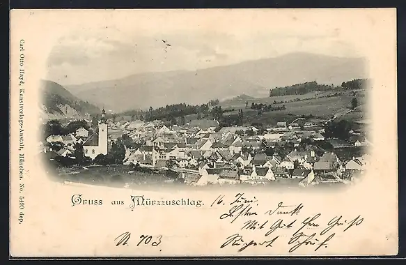 AK Mürzzuschlag, Teilansicht mit Kirche