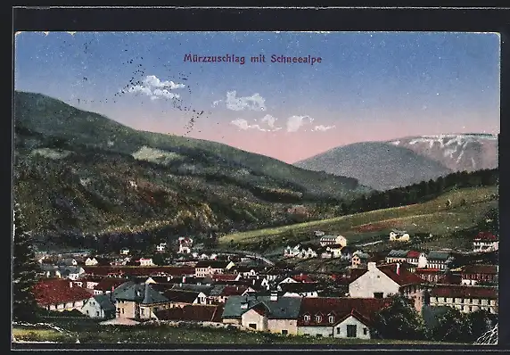 AK Mürzzuschlag, Teilansicht mit Schneealpe