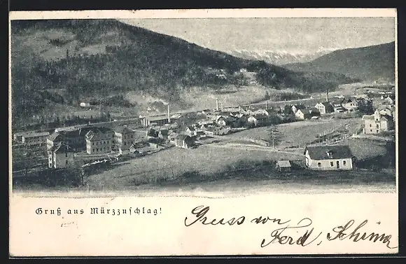 AK Mürzzuschlag, Totalansicht vom Berg aus